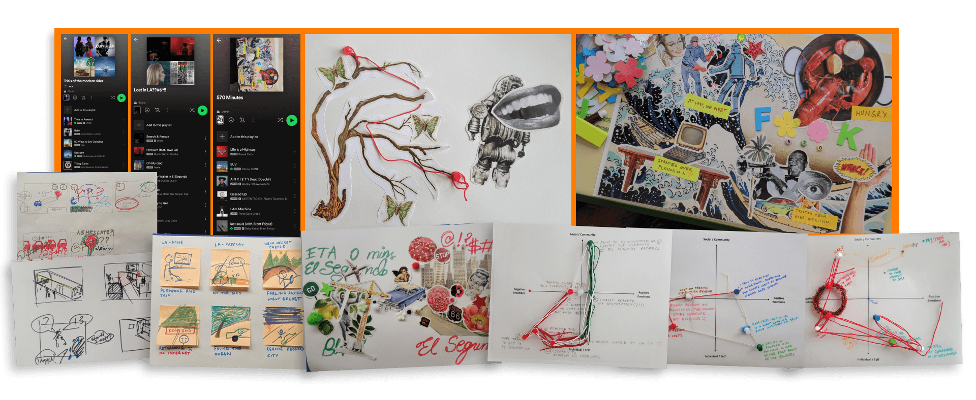 The outcomes of the workshop show how participants externalized their mobility experiences through creative methods. Each narrative combines visual, spatial, and auditory elements, providing insight into the socio-emotional dimensions of everyday travel. These experience artifacts function as qualitative data, revealing patterns of adaptation, stress, and resilience, while also highlighting the personal meanings participants assign to their mobility choices.