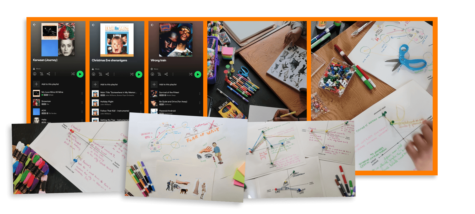 Finally, participants curate music that mirrors their emotions, layering sound onto the visual story for a fuller expression of their experience.
